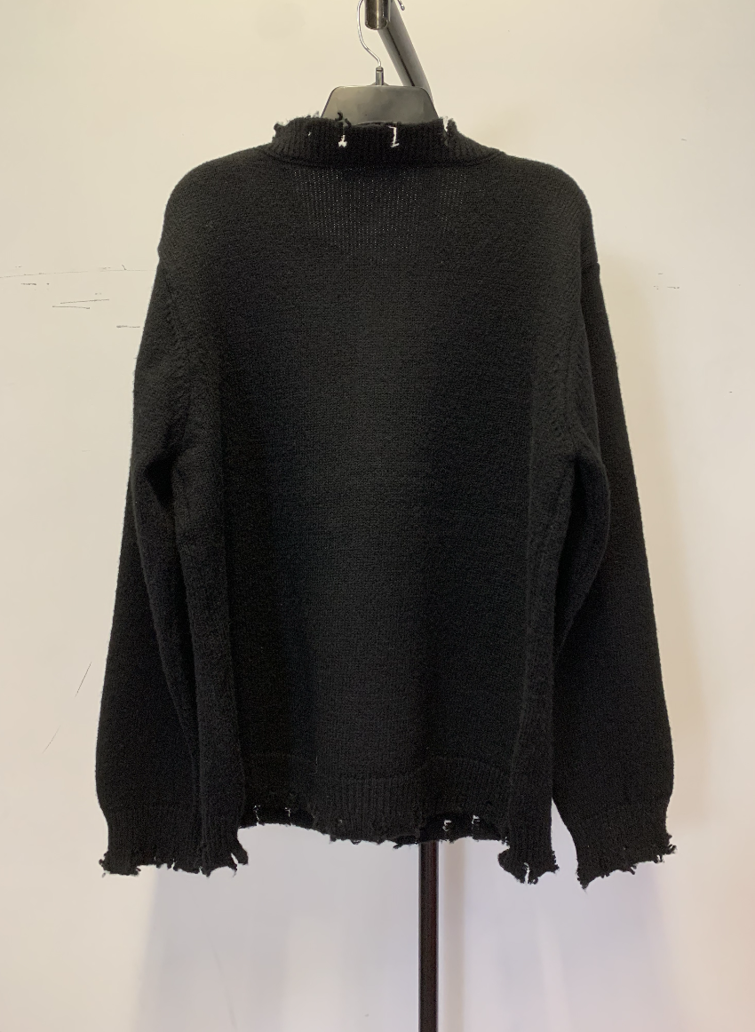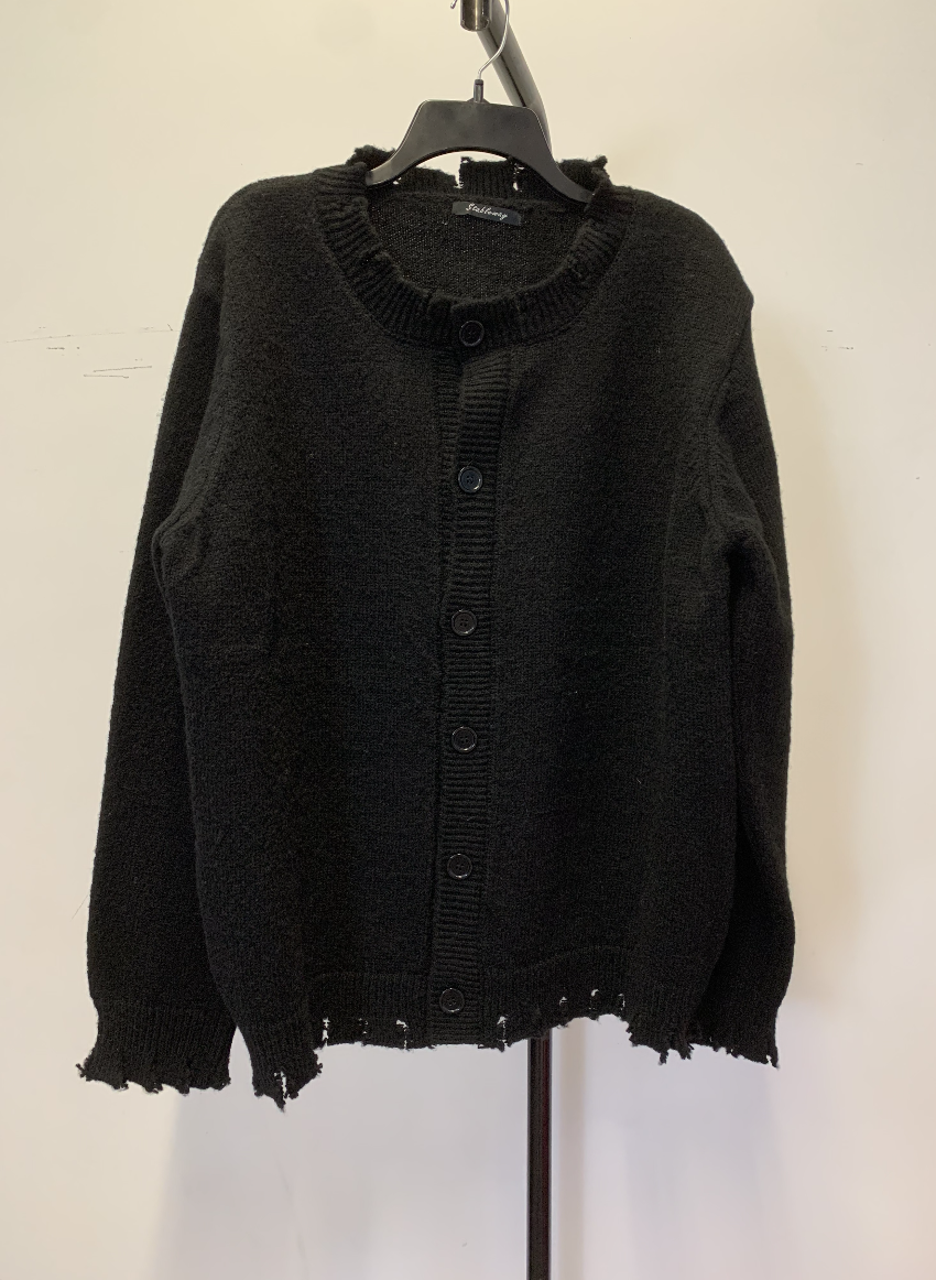 Made from soft knit fabric with a round neckline and front button closure in a naturally relaxed silhouette. Raw, distressed edges at the collar, cuffs, and hem add personality and a street-ready aesthetic β great for fall/winter layering and casual styling.