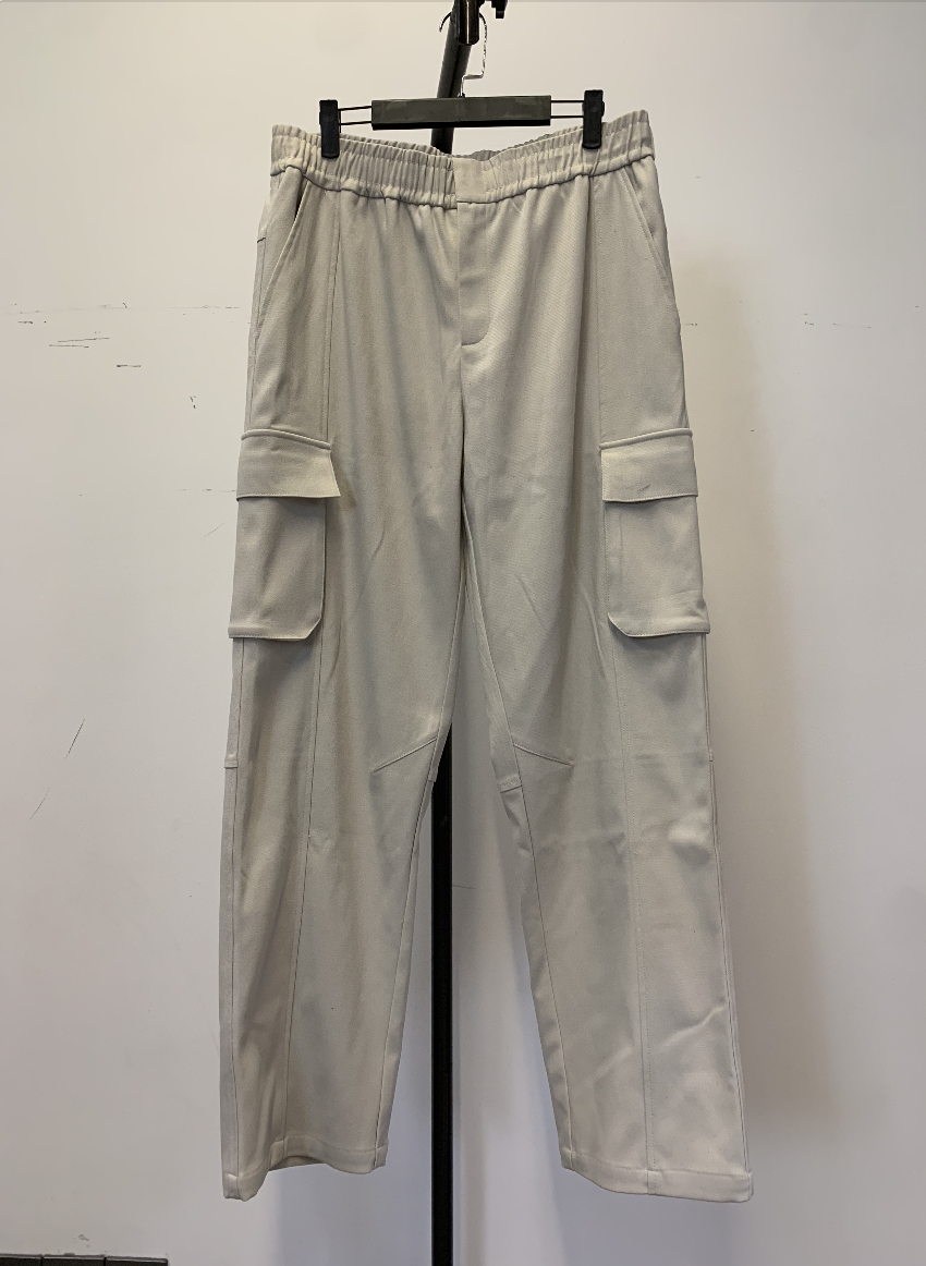 Style 04A clean, straight-leg pants design featuring dual side cargo pockets and an elastic waistband for a relaxed yet practical look. The natural drape of the fabric makes these great for everyday outings, casual wear, and cargo-inspired styling.
