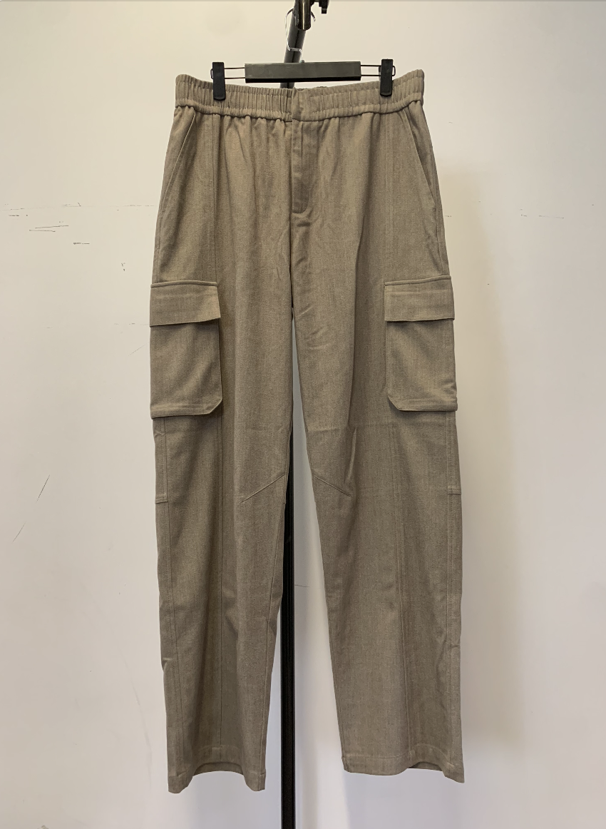 Style 03A clean, straight-leg pants design featuring dual side cargo pockets and an elastic waistband for a relaxed yet practical look. The natural drape of the fabric makes these great for everyday outings, casual wear, and cargo-inspired styling.