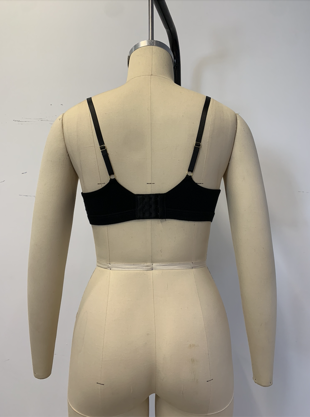 Thin spaghetti straps, triangle cups, wire-free, back hook-and-eye closure