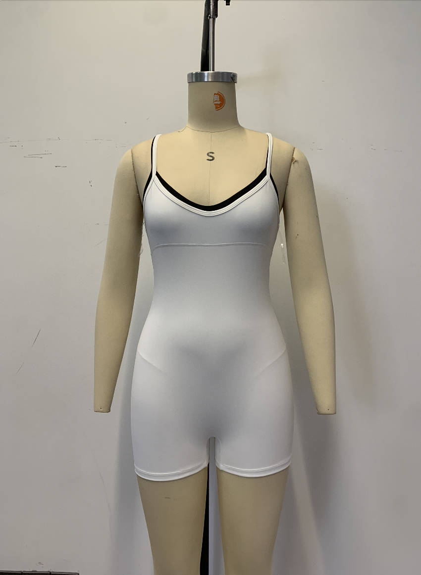 A fitted romper with a clean square neckline and contrast-color double straps that cross in the back for added visual interest and a sporty feel. The smooth, body-skimming fit naturally flatters the figure β perfect for everyday wear, casual outings, and athletic-inspired styling.