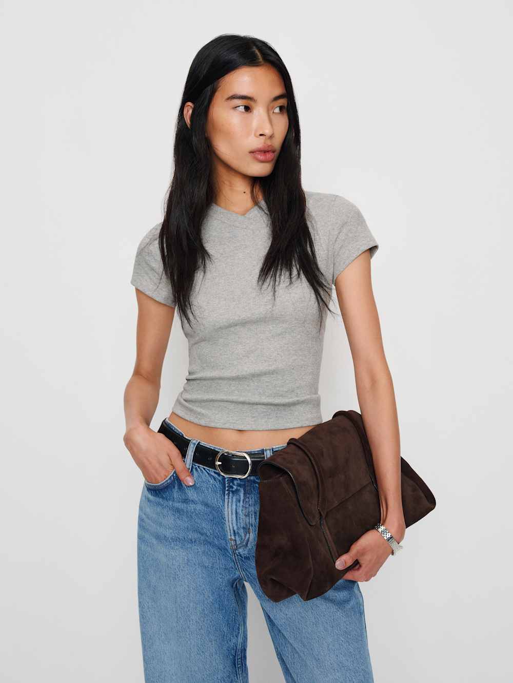 Style 02A clean, fitted silhouette with a V-neckline and short sleeves. The smooth, comfortable fabric flatters the upper body β versatile for everyday wear, layering, and casual commuting.